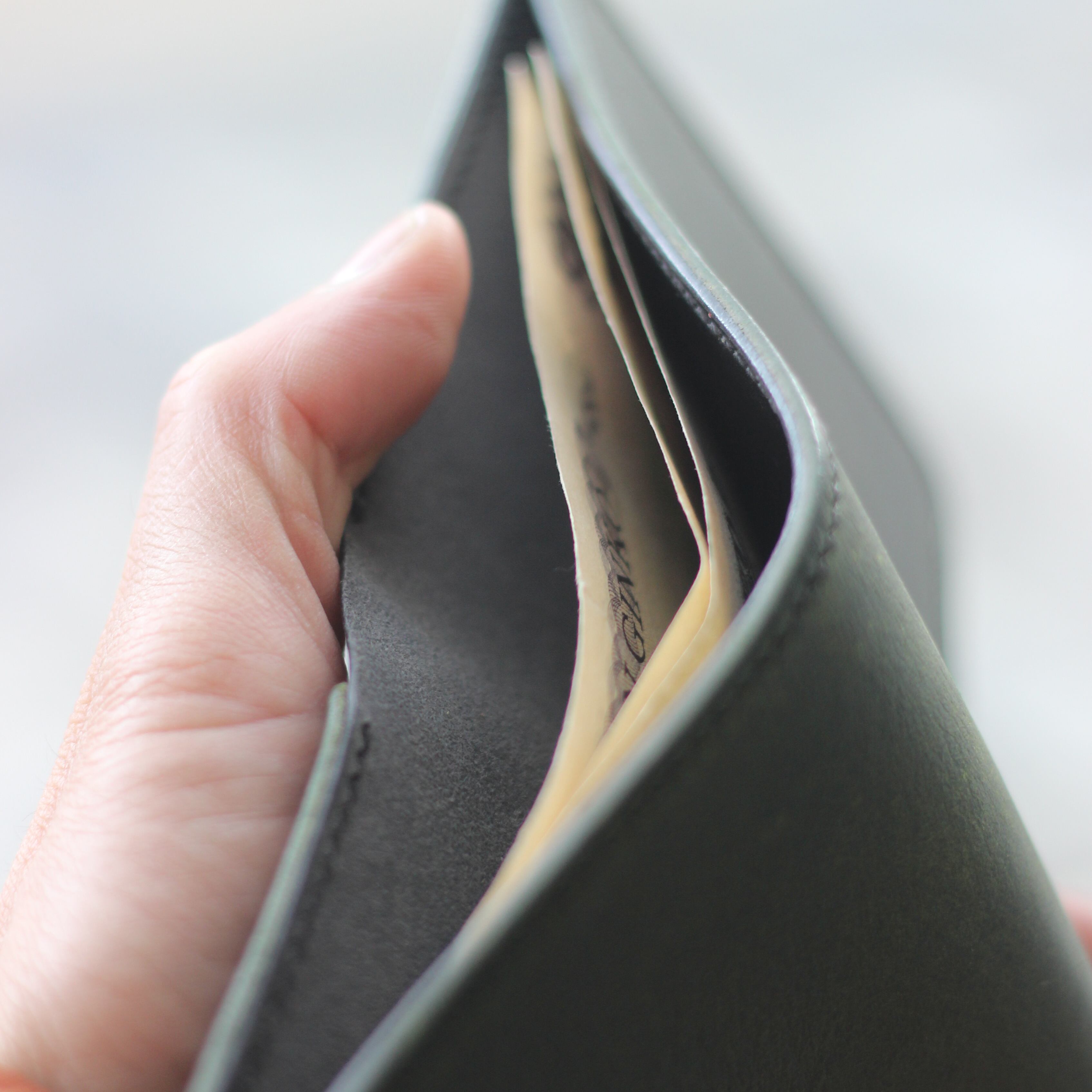 牛革本来の質感を残したシボレザーを使用した折り財布、BIFOLD WALLET:NIGHT FOREST。手にした瞬間から品のある存在感を放ちます。大切なカードやお札をスマートに収納できるデザインでありながら、コンパクトなサイズ感も魅力です。コインポケットは無く、膨らまずに型崩れもしないので特に長持ちします。