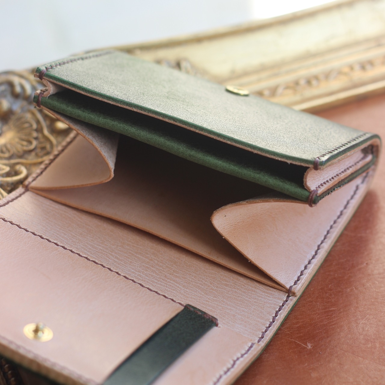 風水でも吉とされている緑とベージュ、どんなスタイルやシーンにも合わせやすい逸品です。さらに、カバンの中でも取り出しやすいサイズなので、忙しい日常でもスムーズに取り出すことができます。